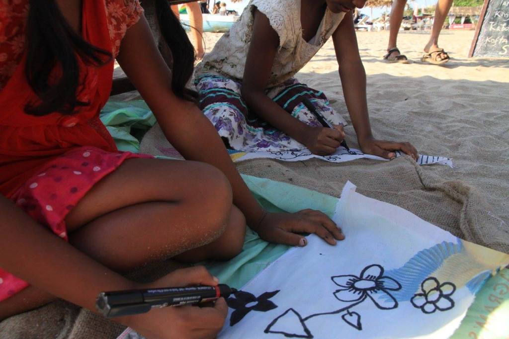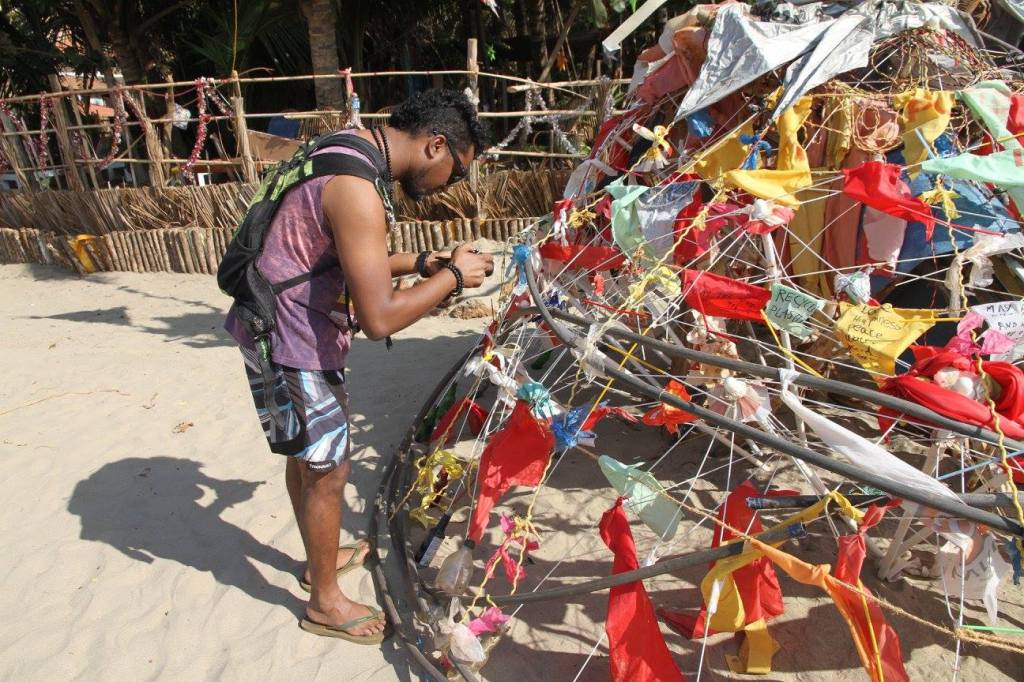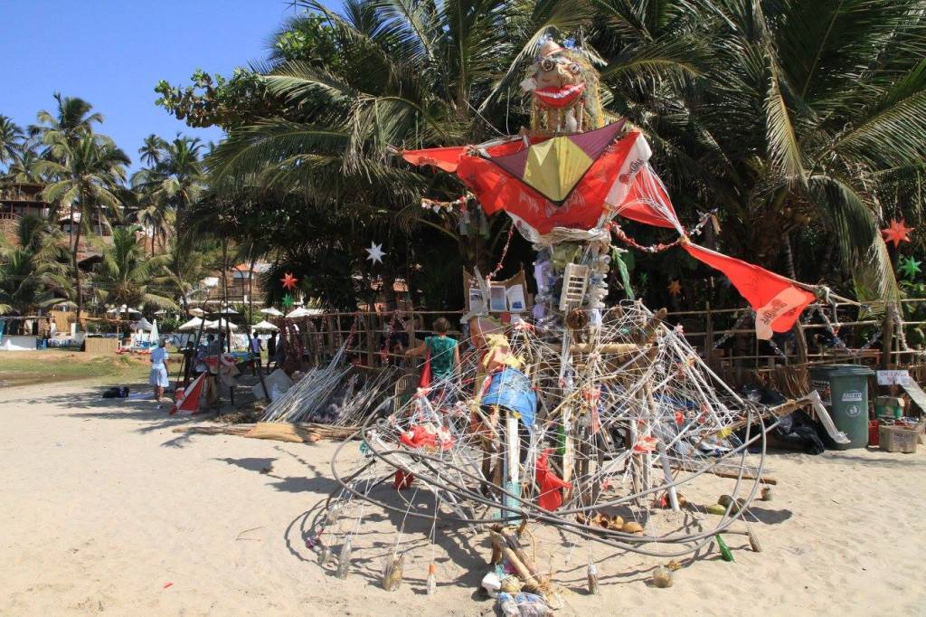 2016 India, Goa “ Dancing Baby”. This socially engaged artwork was done and created together with my friends who has lived in Goa many years. Our goal was to develope shared knowledge trought art; how rubbish is affecting in our envroment. We invited school children to join to create huge dancing baby statue we did out of trash what we found from the beach. People who passing by could read info we created about the facts what pollution does to our environment.
