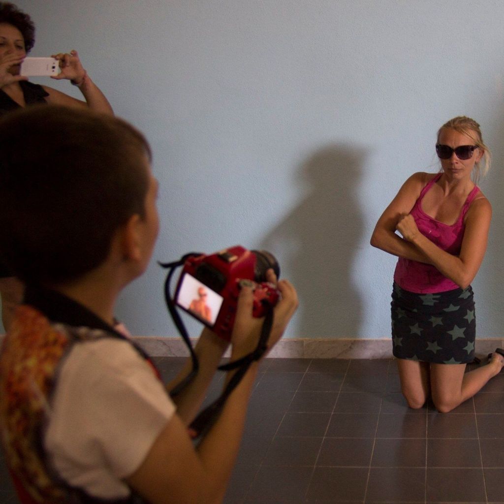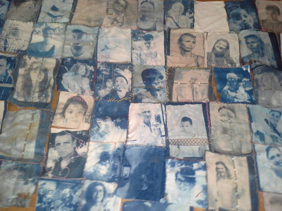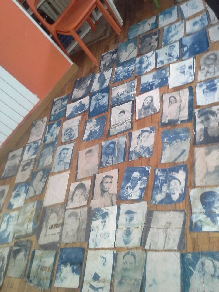 2016 Italy, Naples”Self Portrait” with people from Scampia, curator Fabio Cito. I was invited to work with children. I created photograph session where children were photographing each others and then result was done with cyanotuphic to cloth. I did the final art piece.
