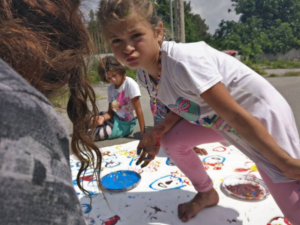 2018 Naples, International socially engaged art symposium curator Fabio Cito. I was invited to work with children with community art methods. I did two art works, one was performative art happening with food were the final result was piece of photograph exhibit in the art exhibition. The other one was collective painting with the idea of what I love and what makes me happy.
